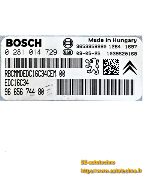 CITROEN PEUGEOT 1.6 HDI BOSCH 0 281 014 729, 0281014729, 96 656 744 80, 9665674480, 9653958980, EDC16C34